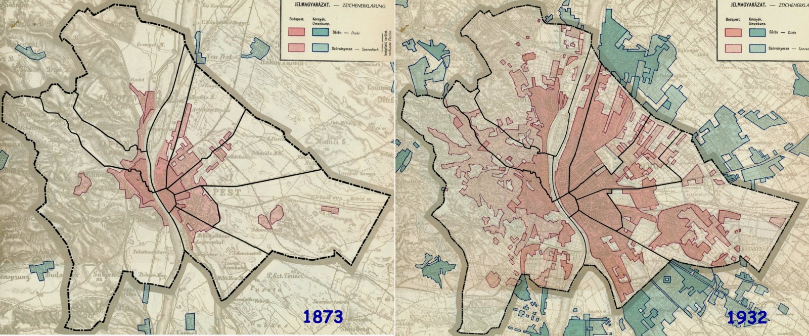 (A térképek még a kerületek 1931-ben életbe léptetett átalakítását megelőző, tehát 1873-as  kerülethatárokat mutatják.)