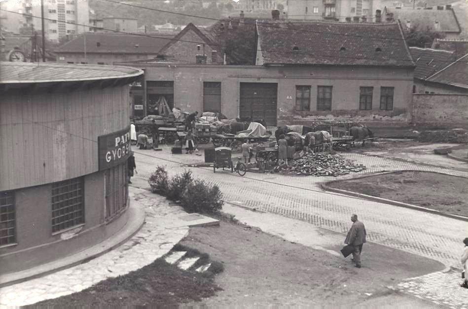 Az 1920-30-as évek fordulóján telepedett itt meg az óbudai piac, a ’30-as években az árusok számára már fedett üzletekkel, míves kúttal, a lezárhatóságot szolgáló kovácsoltvas kapukkal. A 40-es években ezen kívül egy ovális alaprajzú épület létesült, különböző árusok és szolgáltatók számára, az előtte lévő üres területet pedig hétvégeken a kofák asztalai töltötték be.