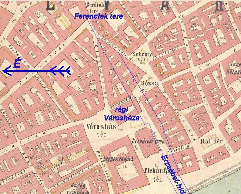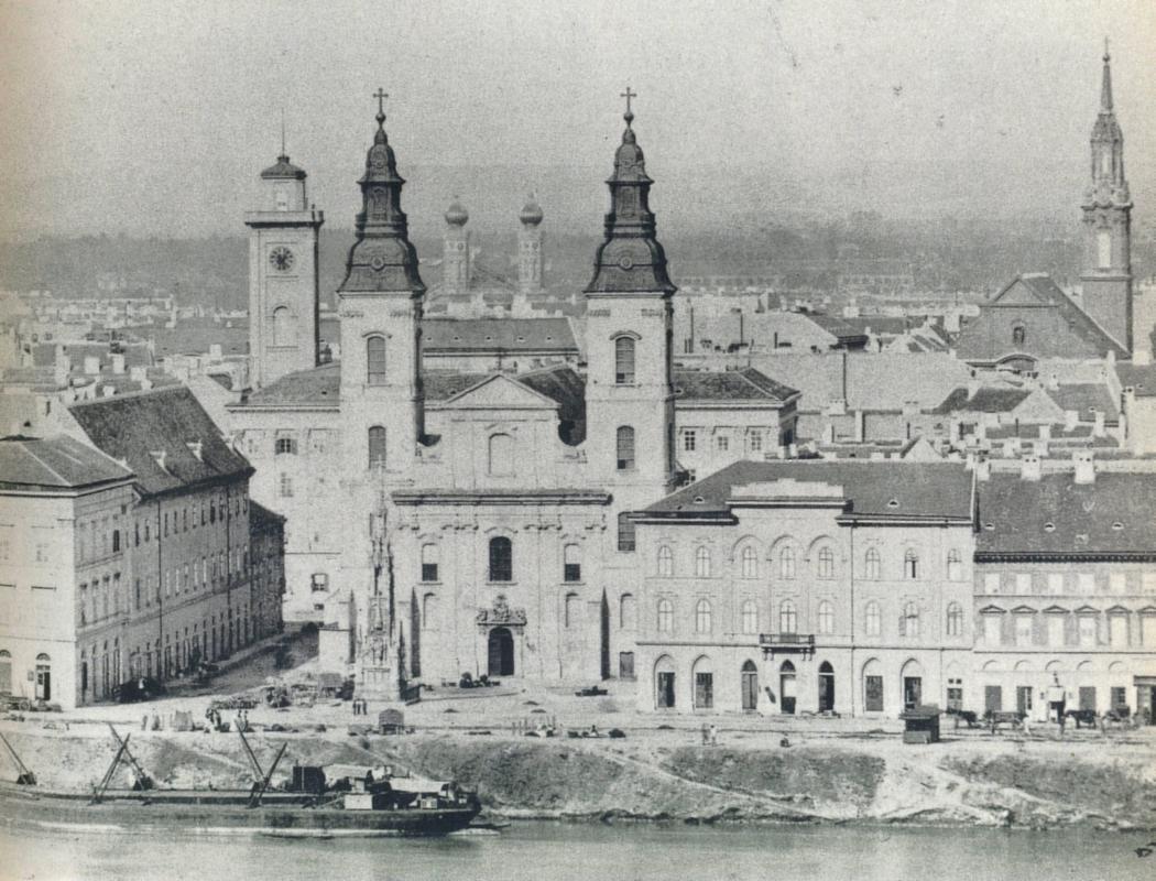 Tanulságos az 1860-as években a Duna felől készített fotó, amelyen a plébániatemplomtól balra a régi piarista rendház, a templom mögött a Városháza látható. (A templomtól balra látható épület helyén zajlik most az Erzsébet hídon a forgalom.)