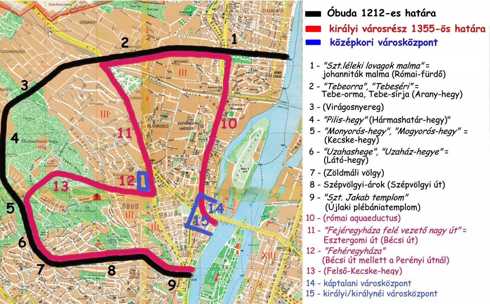 A helyzet az, hogy aki állít valamit annak kell bizonyítani. Tehát: 1. igazolni azt, hogy az 1355-ben készült határjárás a ma ismert Óbuda helyrajzával azonos! 2. bármivel igazolni, hogy a római kőrcirkusz azonos Kurszán fejedelem várával! 3. közölni annak az oklevélnek a leírását és forrását amely az írja, hogy a római amfiteátrum és a Flórián tér között létezett a klarissza kolostor! 4. helymeghatározó oklevéllel igazolni, hogy a Kálvin közben talált romok azonosak a királynék várával! 5. bármivel igazolni, hogy Óbuda látképei azonosak a ma Óbudaként ismert területtel!!! A szamárcsapásról nehéz letérni? Milyen alapon állítasz valótlanságokat fővárosunk múltjáról, miért akarod megtéveszteni az érdeklődő olvasókat?! A mai Óbudának ismert terület egy vízzel-mocsárral határolt homoksziget! Nem tűnt még fel? http://osbuda.blogspot.hu/