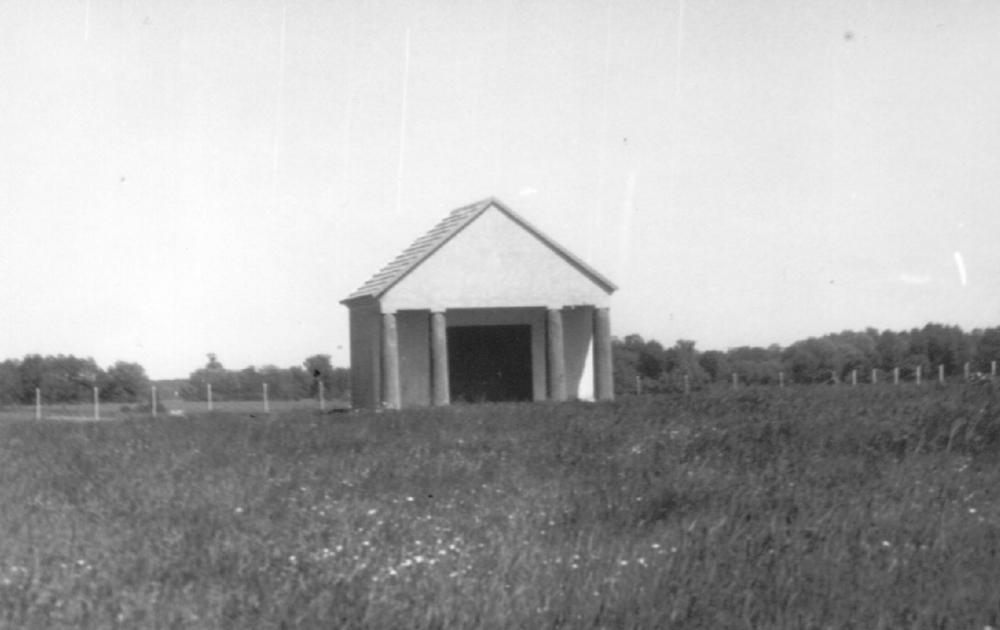 Az 1972-ben megnyitott püspökmolnári új köztemető képe a ravatalozóval.