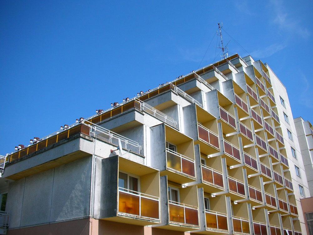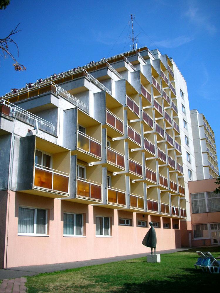Az aranyparton egymás után áll három darab paneles technikával épült, stílusában és formájában majdnem egyforma fektetett háromszög alakú üdülő. A sorban ebből az első a volt Belügyminisztérium Üdülő, ami ma Hotel Aranypart néven működik.
