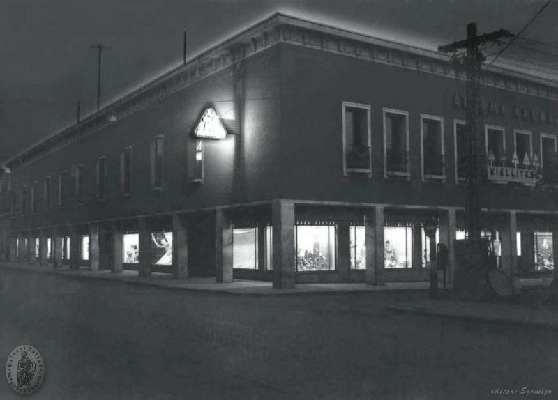 Az áruház a város főterén, a vasútállomás közelében áll. "Az áruházi igazgatás sűrűn váltakozó vezetőinek igényére az eredeti koncepció - nem előnyére - sokat változott és az építkezés elhúzódását eredményezte. Hagyományaink tárházában ilyen karakterű épület nehezen található. Az új utakat kereső, a korszerű képletből kiindult első terv a bírálóbizottság tagjai zömének a tetszését - akkortájt - nyilvánvalóan nem nyerhette el, ezért vált szükségessé az áttervezés. A második átdolgozott tervre viszont a stílusáramlatok negatív jegyeit próbálták alkalmazni." Vass Antal F: architecahungarica.hu